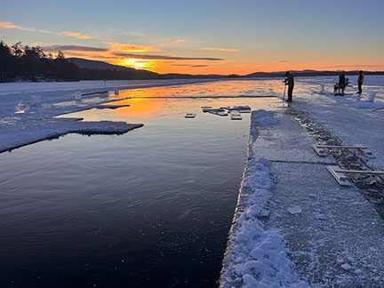 The 2025 RDC Ice Harvest was completed from Jan. 24 to Jan. 27 at Deep End. Many thanks to the workers who came out to help us put up 3,250 ice blocks in Rockywold and Deephaven Ice Houses. The cold weather and lack of early season snow helped make beautiful black ice that was between 13.25 and 14.5 inches thick. Photos by Eric Morse.