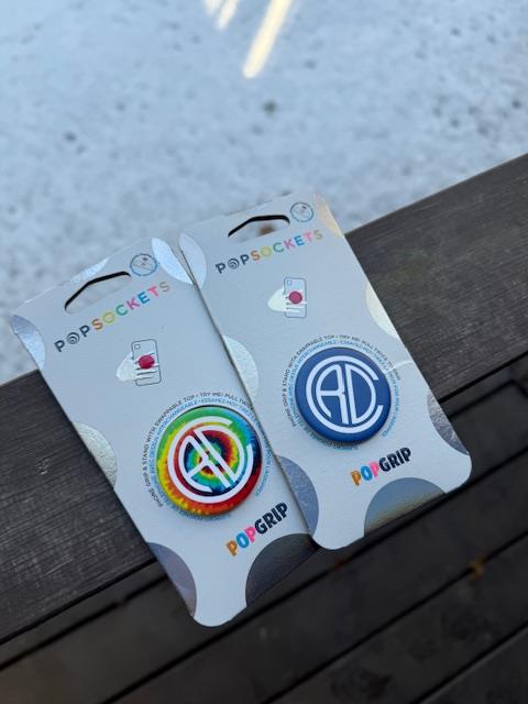We collaborated with PopSockets and created two custom PopSockets. One PopSocket has a blue logo with a white background and white logo on a tie dye background.